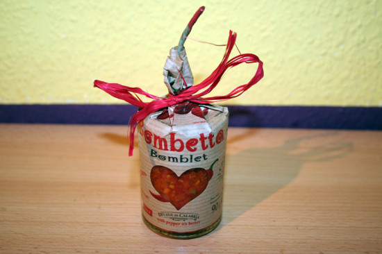 Gustini hat noch ein Glas Bomba di Calabria piccante mit ins Paket gelegt. Alleine die Verpackung, die an eine kleine Bombe erinnert, kam schon sehr gut an. Gast-Grillerin Anne war total begeistert: